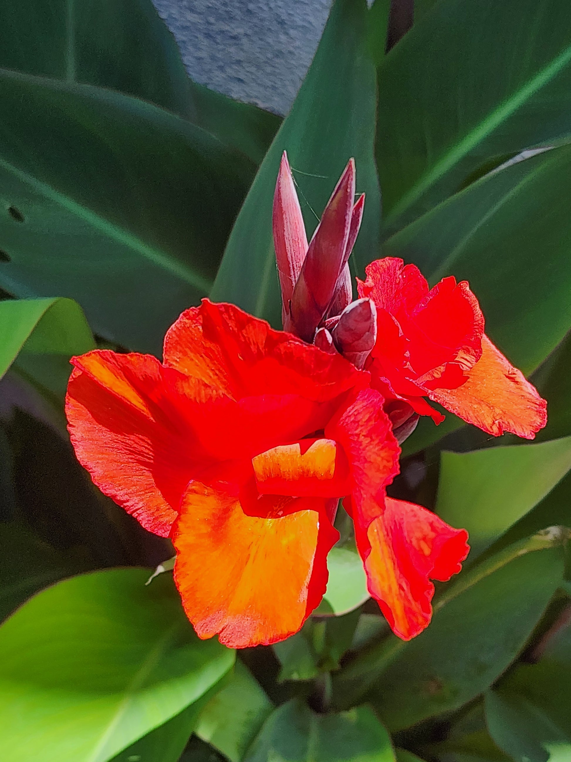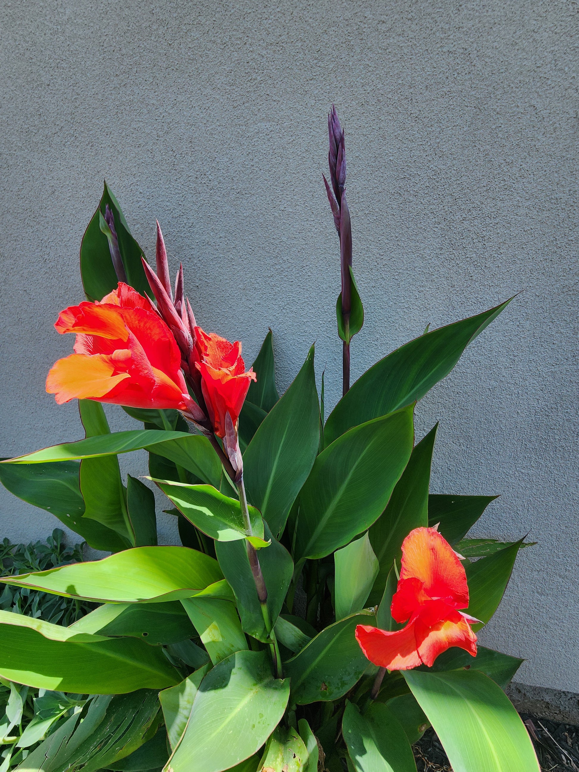 Canna × generalis, or Canna lily, is a hybrid plant known for its large, colorful flowers and bold foliage.